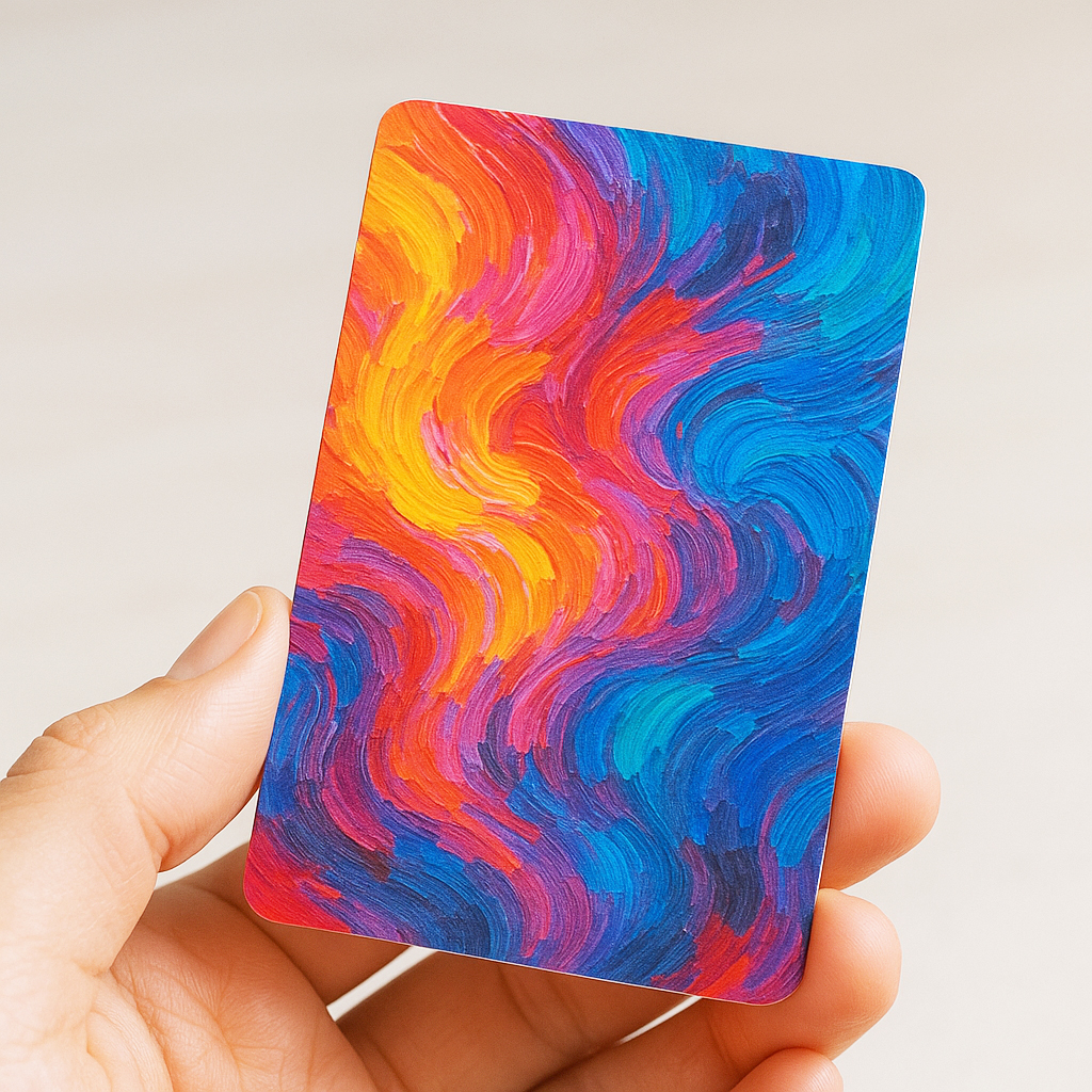 推薦選擇:預設採用 UV數位彩印;若想要更強烈的層次與光澤,建議加購 局部水晶釉光 或 立體浮雕,打造專屬的高辨識度卡面。